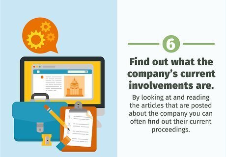 Find out what the company’s current involvements are. By looking at and reading the articles that are posted about the company you can often find out their current proceedings. By looking at the articles you can get a good indication of how the stock will perform soon. For example, if the company is about to enter a large legal battle, it is often not a good idea to buy that stock, at least not after its price has dropped below its usual minimum and could then become profitable.