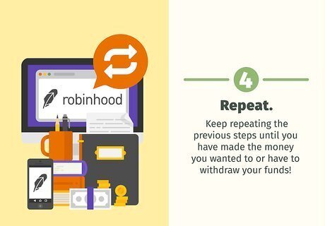 Repeat. Keep repeating the previous steps until you have made the money you wanted to or have to withdraw your funds!