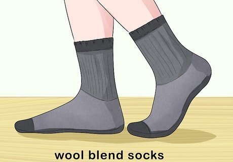 Protect your feet with thick, wicking socks. Wear socks that are thick and warm. Like all the layers against your skin, these need to be made of fibers that won’t hold moisture, such as a wool blend. Make sure they cover your ankles to keep them warm.