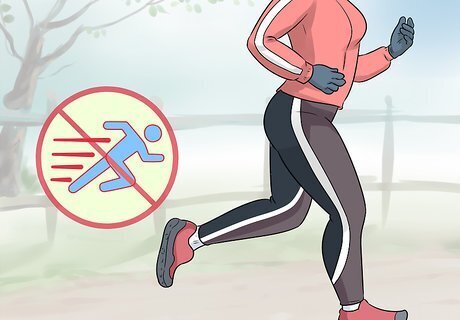 Moderate your effort level. Cold weather raises your heart rate, and running takes more effort when there’s snow on the ground. Don't push yourself as hard as you usually do, or you'll risk stressing your body too much. Keep your pace a little slower, and measure your goal in time, not distance.