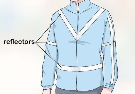 Wear reflective clothes. Pick running gear that makes it easier for drivers to spot you. There is less light during the winter, especially in the morning or evening, and when the sky is overcast. Wear reflective gear or add reflective tape, and choose outfits in bright colors.