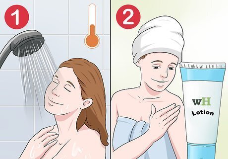 Take care of your skin as soon as you get home. Sweat will dry out your skin. Prevent skin irritation by getting sweaty gear off right away. Peel off those layers and take a shower, but keep the water lukewarm. Hot water is drying and going between temperature extremes can be irritating to your skin.Reapply body lotion after your shower.