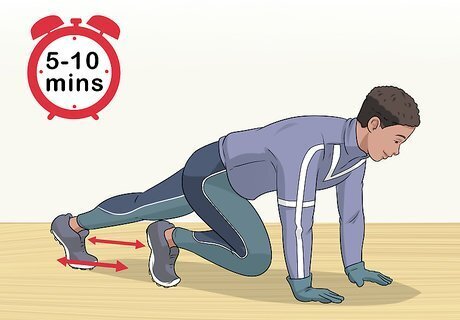 Warm up carefully. Start your warm up inside to get your body temperature up and your joints limber before you hit the cold. Spend five to ten minutes doing active stretches, such as lunges, squats, leg swings, and mountain climbers. When you’re ready to go outside, spend another five to ten minutes easing into your run slowly, to give your body time to adjust to the cold.