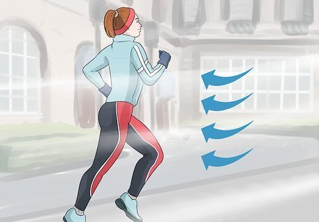 Start your run facing the wind. Windchill will make you colder than the ambient air temperature, and running against the wind is more work. If you’re dealing with any significant wind, face into it for the first part of your run, when you're strongest and not yet sweating very much. For the second half, when you’re getting tired and sweaty, turn around so you will have the wind at your back. This will help you avoid getting chilled or over tired.