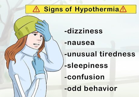 Recognize the signs of hypothermia. Pay attention if you or other runners around you experience dizziness, nausea, unusual tiredness, sleepiness, confusion, or odd behavior. These are symptoms of hypothermia. This can be very dangerous, so seek immediate help.