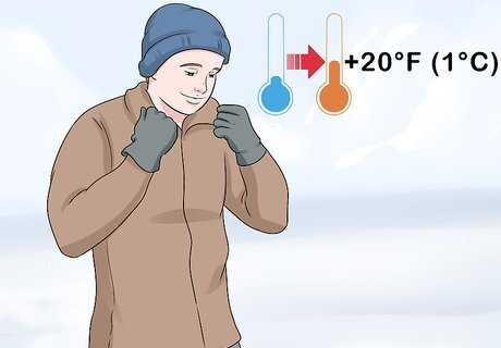 Dress for warmer temperatures. You will warm up as you exercise, so if your outfit is comfortable when you step outside, you will soon be too hot. Dress for weather that is warmer by 20 degrees Fahrenheit (11 degrees Celsius) than it is outside.