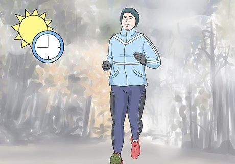 Plan your workout for midday. Get going when the temperature and light are the best. This will give ice a chance to melt, but avoid dropping temperatures as the sun goes down. Make sure you’re visible to drivers by picking the best light of the day for your run.