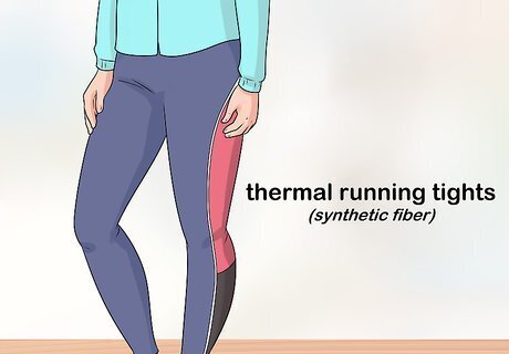 Keep your legs warm. For your legs, thermal running tights can provide all three layers of protection. Find a pair made of synthetic fibers that wick moisture but still retain heat and have an outer coating to repel water.