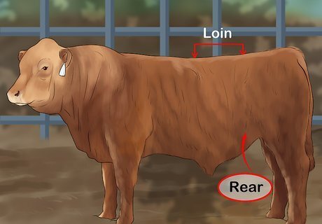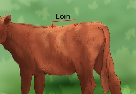 Check the back and loin. The loin is the area just before the cattle's rump. Run your hand from the heifer's back to its loin. A heifer should have a straight back and the muscles should become noticeably stronger and firmer in the loin. If a heifer's back feels softer and weaker in the loin, choose a different heifer.