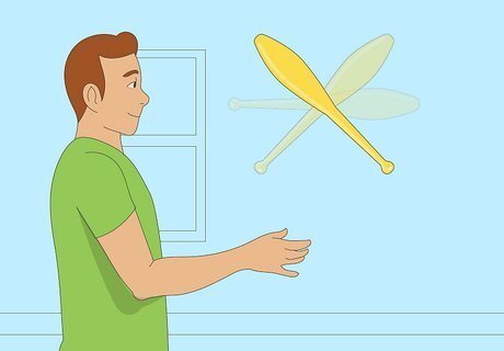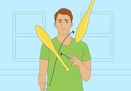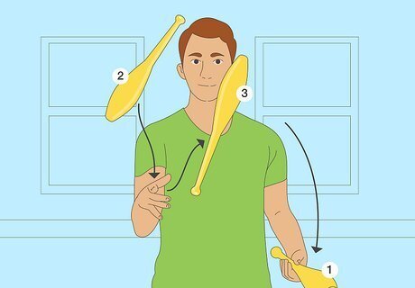 Now you have done three throws! Hand one club back to your dominant hand, and start over until you can catch all three throws several times in a row.
