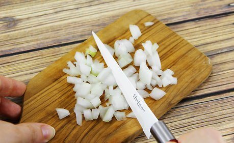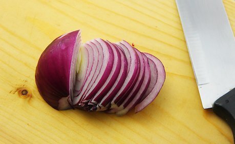 Sprinkle chopped onion on top of guacamole. Guacamole recipes typically call for chopped onion. Chop the correct amount, but only mix in ⅔ or ¾ of the total amount. Once you’re done making the guacamole, put it into a bowl and cover the surface of it with the rest of the chopped onion.