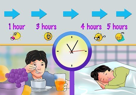 Make sure your child eats several hours before bed. Some children wake up early in the morning due to hunger and have a hard time going back to sleep until they get something to eat. This can then lead to a very early breakfast for your child and for you, and throw off the rest of the day’s meals. Prevent morning hunger by ensuring your child eats a substantial dinner two to three hours before bedtime. You can also prevent an early morning breakfast by putting off breakfast in the morning. Instead of giving your child breakfast as soon as they wakes up, try to postpone giving her breakfast. Do this gradually by waiting ten minutes after your child wakes up to make breakfast. Add on ten minutes each day until you can postpone breakfast for an hour. Your child will be less likely to wake up early for breakfast if they know they will need to wait anyway for a meal.