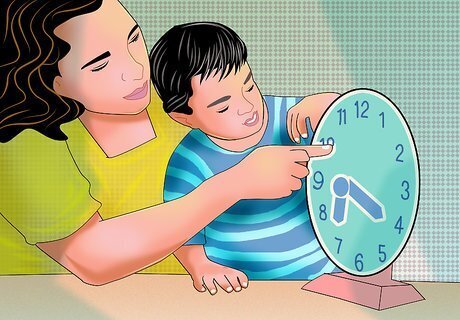Explain the purpose of the number on the clock. Sit down with your child and explain that once the number on the clock matches the number on the piece of paper, they can come and wake you up. But they cannot wake you up any time before or after the number on the piece of paper. After several days to a week, move the number up again so it is a half hour closer to the new wake time. For example, “6”. Continue to do this over a period of two weeks until you reach the new wake time. Once you reach the new wake time, you can keep the piece of paper on the clock, as this will now be the set wake up time for your child to follow.