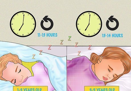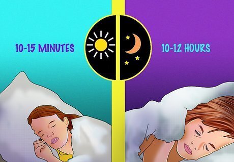 Minimize day naps to 10-15 minutes. Keep in mind your child only needs 10-12 hours of sleep within 24 hours, and most of those sleeping hours should be done at night. You do not want your child to fulfill her sleep requirements by napping too much during the day. Limit daytime naps so they are only 10-15 minutes at a time and occur once or twice a day. Be sure not to limit napping during the day too much, as you do not want your child to be overly tired by the end of the day.