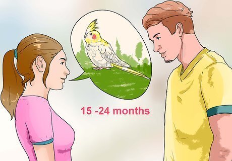 Determine age. If you don't know your both your cockatiels' ages, you need to figure this information out before breeding. A vet can help determine the rough age of your cockatiel. If possible, ask for your birds' birth dates from the breeder or pet store where you purchased them. If your cockatiels are not at least 15 to 24 months old, breeding is risky. Younger birds encounter more problems when breeding and fertilization is generally less successful.