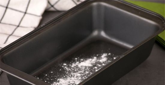 Sprinkle a little bit of baking powder across the base of the cake pan (tin). Do this prior to adding the fruit cake batter. If you are using parchment paper (baking paper), sprinkle the baking powder over that.