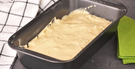 Pour the batter into the pan. It will sit over the top of the baking soda.