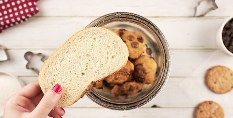 Add a slice of bread. This is a classic trick used for many cookies. Adding half a slice of bread to the cookies' container makes them absorb the moisture of the bread and stay fresh and soft. It will become hard in a few days though, so be sure to change it. Apple slices work just as well, but they will continue to rot, so you will have to change them every day. However, if you aren't adding applesauce to it, it will give it a bit of a fruity flavor.
