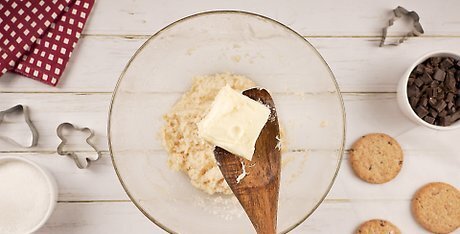Add some extra butter to the recipe. Consider your sugar to butter amount carefully. If you have more sugar than butter, you will usually have a harder, flatter cookie, but if you have a little extra butter, you will have a softer, more chewy cookie. Even though it's a little more calories to add to your system, they will stay much softer. Learn How to Make Chocolate Chip Cookies. If you are worried about calories, get unsalted butter or put in a little more oil instead.