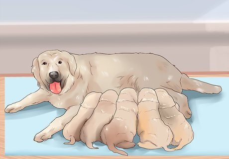 Assess the dog's health during labor and delivery. It is important that you know what to expect during labor and delivery so that you can assess whether they are going well or if there is a problem. While the dog is in labor and while it is delivering its puppies you should be present if possible and keeping an eye on your dog's energy level and overall health. While your dog is pregnant, discuss what to expect with your veterinarian and ask him or her any questions that you have about the process. Call your veterinary office immediately if you suspect a health problem with your dog while it is giving birth. The veterinary staff should be able to discuss the problems you are concerned with and they should be able to recommend whether or not to bring your dog in to the veterinary office.