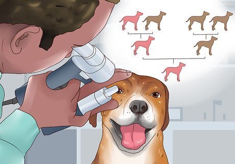 Get your dog's genetics tested. If you can't trace your dog's pedigree, or you just want to make very sure that you are breeding a dog without genetic problems, then you can get the dog tested. These tests can show you any negative genetic traits or health problems that the mother dog could pass onto its offspring. Breeding purebred dogs can be especially fraught with genetic problems because of inbreeding. If you plan on breeding purebred dogs, you need to be especially clear about your dog's genetic history so you can avoid puppies with genetic health problems. Understanding whether your dog is likely to pass on some bad traits requires knowing a bit about genes and how they work. Some genetic traits are considered "dominant." These traits can be passed on if only one parent has the genes for them. Some genetic traits are considered "recessive." These traits take genes from both parents to be passed on. Keep in mind that many heritable traits do not yet have an available genetic test. In these cases it is best to rely on your dog’s family medical history and current health.