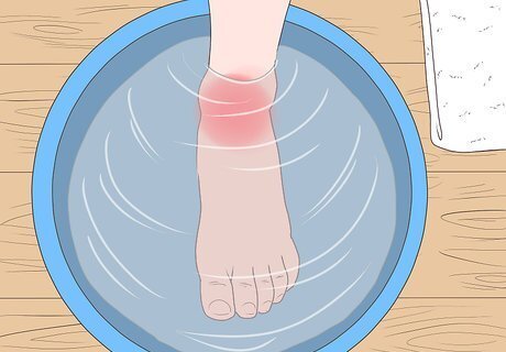 Soak the aching joint in warm water for 20 minutes. Fill a basin with warm, not hot, water and submerge the aching joint. This works well if you're soaking your hand or foot, but you could also soak in a bathtub if your back or hips are aching.Tip: You can strengthen your bones and joints by adding Epsom salts to the water. Epsom salts contain magnesium, which helps your body absorb calcium more effectively. If you can, soak in a large whirlpool or heated pool so you can move your joints while you soak. You can soak your joints as often as you like throughout the day.