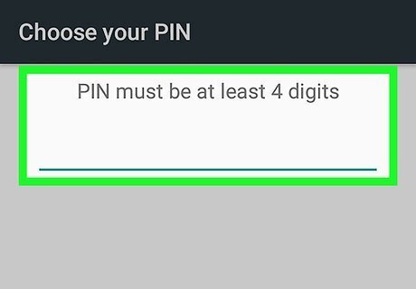 Select a lock method. If your Android’s screen is already protected by a password, pattern, or PIN, you’ll have to enter it now before you can select a new method. Swipe: This allows you to unlock the screen simply by swiping it. This method does not actually provide any security. Pattern: The screen will be protected by a pattern you draw with your finger. PIN: A numeric PIN number will be required to unlock the screen. Password: Lets you create a password with letters, numbers, and symbols to protect your screen.