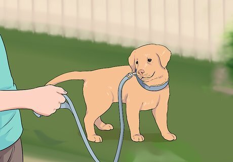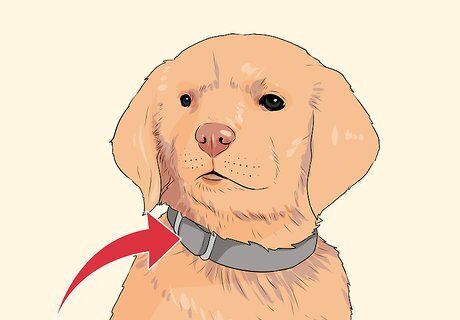 Purchase a collar. Be sure that it is safe for your puppy and the proper size as well. Choose one that isn't too tight, but not too loose either.