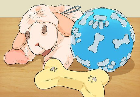 Buy a few dog toys. These are important since your dog will chew on these instead of furniture, and playing with your puppy helps you bond. Be sure they are dog friendly and have no loose or sharp parts, or parts that a puppy could accidentally swallow and choke on.