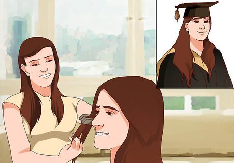 Decide how you want your hair to look. You'll likely wear a graduation cap, but you can still choose a unique style that will look great whether your cap is on or off. If your hair is longer, you may be stuck in a warm, cramped environment so you'll likely want to keep your hair off your neck to help stay cool. A simple pony-tail, side-braid, or your hair up can be great ways to keep cool and look good once the cap comes off. If you are using some sort of product of hairspray, make sure to use a heat protectant spray and primer so it can handle the heat under your cap. This definitely applies for guys who may want to avoid wearing any sort of hair product that can sweat down. Find a picture of the hairstyle you want.That way whether it's your hairdresser, barber, or friend, they can clearly see the vision you have in your head for how you want to look.