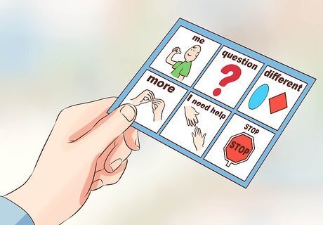 Minimize talking. When stressed, a child may have trouble with auditory processing, and not be able to understand what you are saying. In these circumstances, talk less, and instead focus on de-escalating. Try to use nonverbal communication. For example, instead of asking "Do you want your bunny?", show them the bunny so they can grab it if they want. Instead of saying "Let's go outside," point to the door and have them take your hand so you can lead them out.