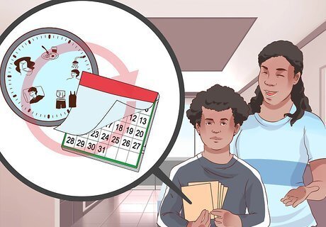 Keep a daily routine. A predictable routine can feel safe to autistic children. It can be especially helpful to make a visual schedule, so that they can see exactly what is going to happen. Try cards that can be rearranged, or a dry-erase board, to account for changes in routine. Pictures can also help support the child's memory, because some autistic children may have difficulty remembering important things. For example, if they have a picture of homework on days when they have homework, it can help them remember.