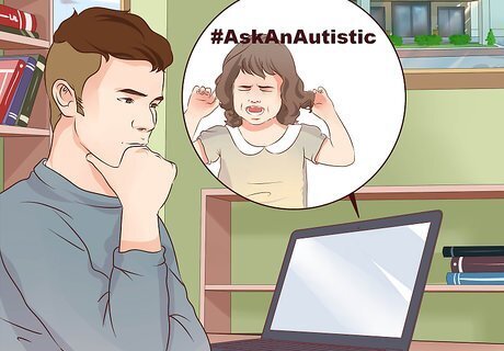 Talk with the child about the behavior, if possible. If your autistic child can explain why he or she does what he does, that is an excellent place to start. The behavior may be a solution he or she has come up with to solve a problem (such as humming in class to drown out unpleasant sensory input). In this case, your goal is to expand their repertoire of ways to solve the problem. Encourage self-advocacy. Teach the child to speak up, using words or AAC. Reward this by paying attention and respecting what they have to say. Explain other people's thoughts and feelings in a clear, concrete way. It may help to draw stick-figure pictures, with thought bubbles, where you and the child can write down what others are thinking.