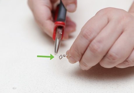 Crimp a jump ring onto a loop at one end. Thread one end of your wire through your crimp bead and follow it with a jump ring. Now you can loop your wire around and bring it back through the way it came, keeping the loop on the outside of the crimp bead. Then use your jewelry pliers to crimp the crimp bead and fix the loop and jump ring into place. Your loop should be about ¼ to ½ inch (½ - 1¼ cm) in size.