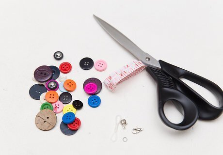 Gather your buttons and purchase supplies. You should be able to find most of these items around the house, but those you are lacking can be found at your local craft store. Be sure to check your clasp has a jump ring (the solid ring the clasp clips to), otherwise you'll need to purchase this as well. Your entire supply list includes: Buttons Jump ring Scissors Clasp Measuring tape Twine or fishing line