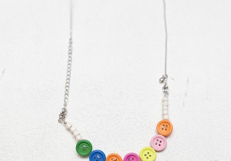 Check the finished product. Wrap your necklace around your neck and clip the clasp in place. Take note of any irregularities or issues you see with the pattern you used. This will be helpful in improving your skill in fashioning beautiful button jewelry.