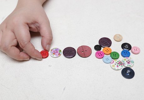 Choose your buttons. If you have a large number of buttons to choose from, you may want to lay each out on your work surface. Arrange the buttons until you're happy with the color scheme and have a general idea of how many you want to use in your necklace. At this point, you should also take into consideration the sizes and shapes of your buttons. Your necklace might benefit from larger buttons being used in the center with smaller buttons tapering to either side. You might also stack smaller buttons atop larger ones to give your necklace contour. However, this approach will require extra line to thread the buttons.