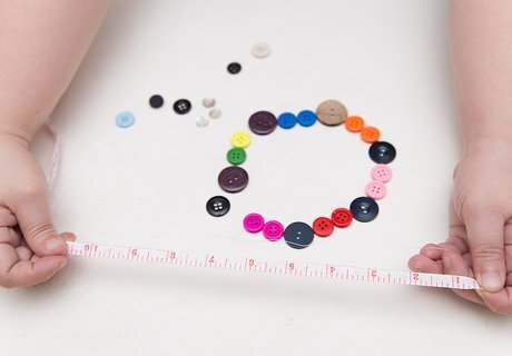 Measure your twine or fishing line. Use your tape measure to portion out a length of your line that matches the length you envision for your necklace. Then add four inches (10 cm) to the end to allow enough line for weaving on buttons and tying off the end of your line. If you intend on stacking your buttons, you should add an extra six inches (15¼ cm) to be sure you can accommodate the vertical threading distance. Depending on the size of your neck, your necklace might require a larger or smaller length, but generally:14" long: choker length16" long: collar sized. May reach the collarbone on petite individuals or feel like a choker for plus sizes18" long: descends below the throat at the collarbone; a popular pendant length20" long: lays below the collarbone; suitable for deep necklines22" long: rests approximately at low necklines