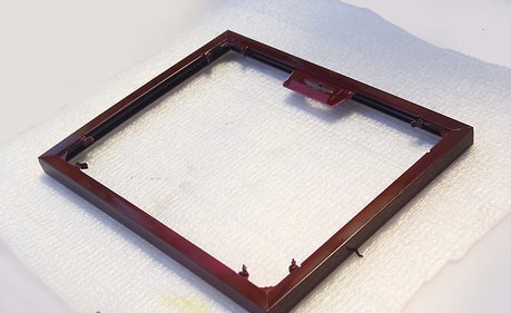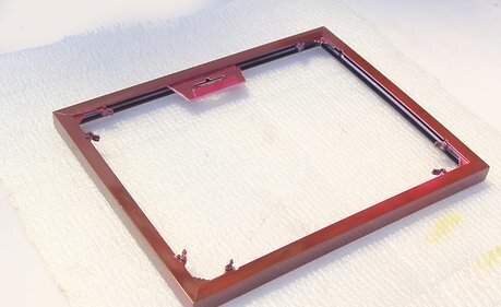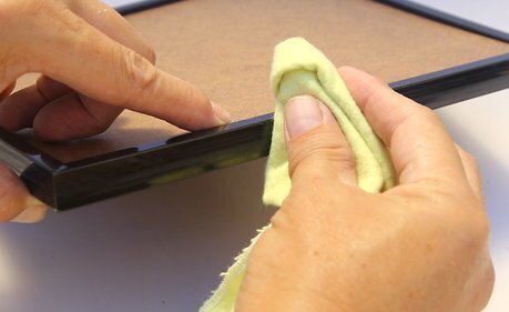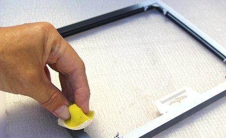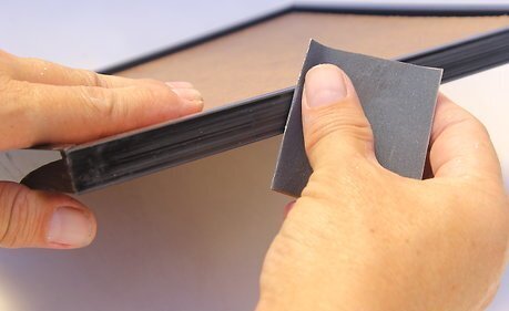 Sand the frame down. If the frame is in ragged condition, lightly sand it down with fine-grain sandpaper. Temporarily remove the backing to prevent it from getting dirty or damaged as you sand.