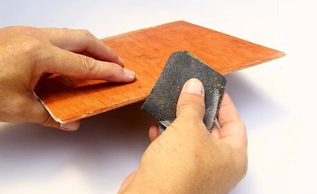 Smooth out the edges with sandpaper. After cutting the board, use rough sandpaper to remove any splintering edges around the perimeter. You may also need to use the sandpaper to shave away some of the board if it will not fit into the frame perfectly.