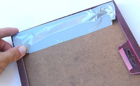 Secure the chalkboard in place. If the backing will fit inside the frame with the board, slide it behind the board to secure everything in place. If you cannot use the backing, use masking tape or packing tape to fix the back of the board to the back of the frame.