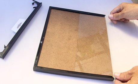 Take the glass or plexiglass out of the frame. It should slide right out. You will not be using the glass for this project, but if you enjoy crafting, you might want to save it among your crafting supplies for a future project. If you dispose of the glass, take precautions to ensure that it doesn't hurt anyone. You can either recycle it or throw it away, but if you throw it away, wrap it in several layers of cloth rag or plastic bag first.