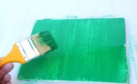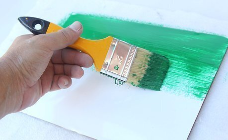 Apply one coat of white latex primer to one side of the board. Use a large sponge brush or standard flat painter's brush to brush on a coat of primer. Let the primer dry completely before applying the chalkboard paint. The primer will make it easier for the paint to stick to the surface of the board.
