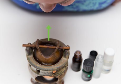 Inhale essential oils through a diffuser. Diffusers are devices that use candles to heat up essential oils so that they evaporate and permeate the air around them. They are easy to use and smell quite nice. Some diffusers use electricity instead of candles.