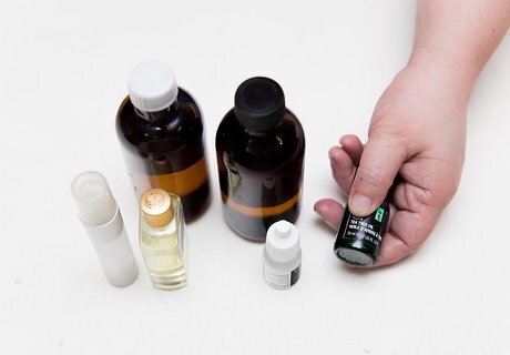 Gather the necessary materials. To make the diluted essential oil solution, you’ll need to gather a few items. You’ll need your selected essential oil and your supplemental carrier oil, a separate bottle or container to hold the new mixture, and several eye droppers. Try to get dark colored glass bottles to filter out the damaging UV rays.