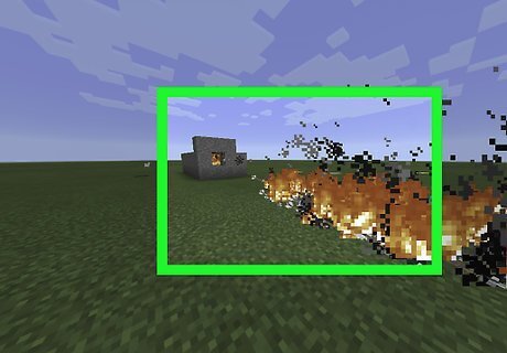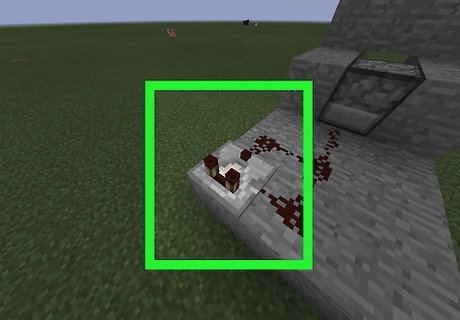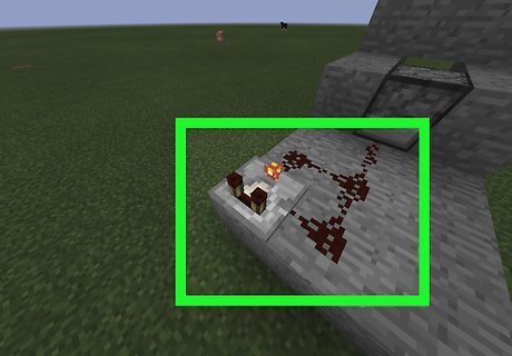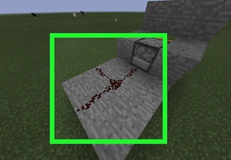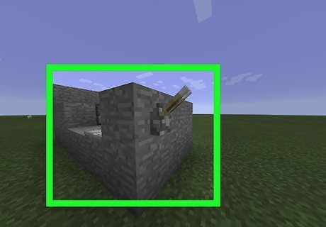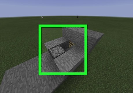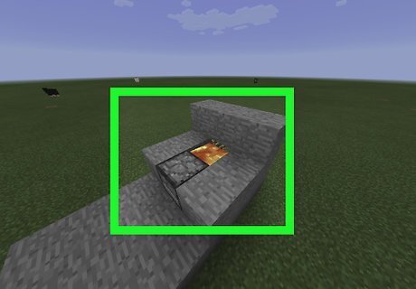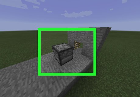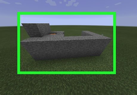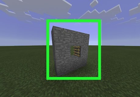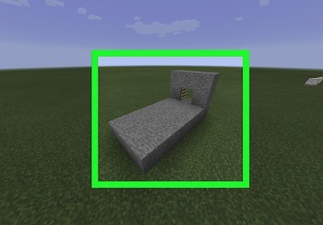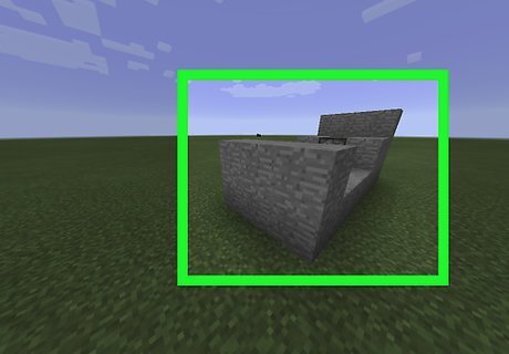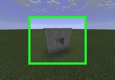 Place down stone in a 5 by 3 arrangement on the ground behind the wall.