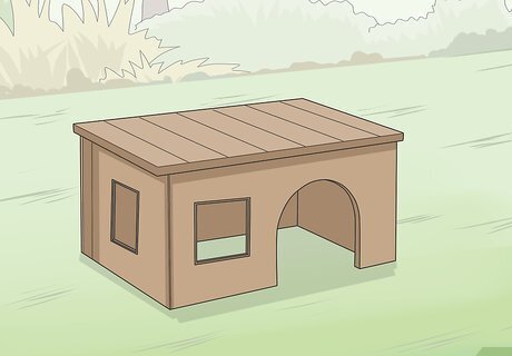 Include 1 guinea pig house in the run for each guinea pig. Guinea pigs need their own place to hide to feel safe and secure. If you already have guinea pig houses inside an indoor cage, simply move these into the outside run. You can find a variety of guinea pig houses and hides in pet supply stores. These are made with a variety of different materials including fabric, wood, and plastic.