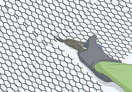Cut the 4 pieces of chicken wire with wire cutters. Measure out 48 in (120 cm) of the stretched chicken wire. Use wire cutters to cut a rectangular piece of chicken wire that fits the frame. Repeat this process to get 4 pieces of chicken wire, so that you have 1 for each frame.