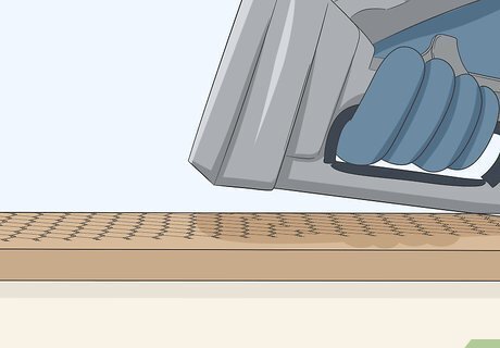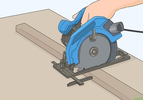 Cut the furring strips to size with a power saw. Use the tape measure to measure out eight 48 in (120 cm) long pieces and twelve 24 in (61 cm) long pieces. Mark these measurements with a pencil. Switch on the power saw, hold the furring strip steady, and slowly guide the saw through the marking. Always follow all of the manufacturer’s safety directions. If you don't want to cut the furring strips yourself, some home improvement stores offer cut-to-size services.