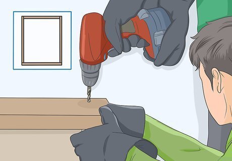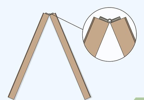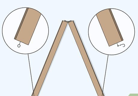 Use 2 hinges to connect 2 frames. Get a friend to hold 2 completed frames together at a right angle, creating a corner. Attach each hinge approximately 2 in (5.1 cm) in from the top and bottom of the frames. Simply use the drill to attach 1 side of the hinge to 1 frame at a time.